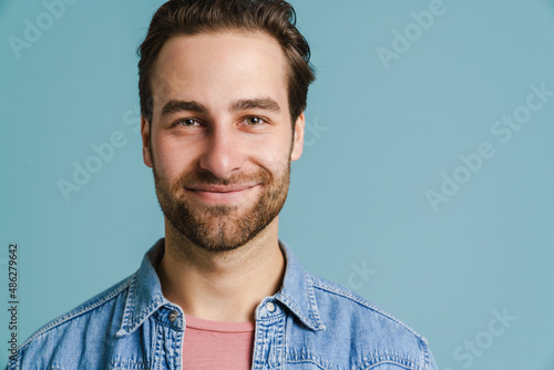 © Drobot Dean, Obraz premium Young bristle man wearing shirt smiling and looking at camera