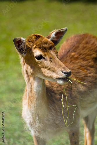 Fototapeta premium young brown deer standing in the grass