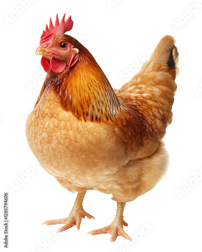 Fototapeta premium Young brown hen isolated on transparent background.