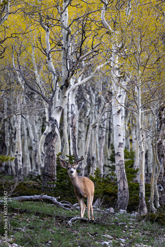 © wollertz, Fototapeta premium Young Buck in a birch forest