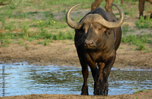 Obraz premium Young Buffalo Bull at Waterhole, Sabi Sands Game Reserve