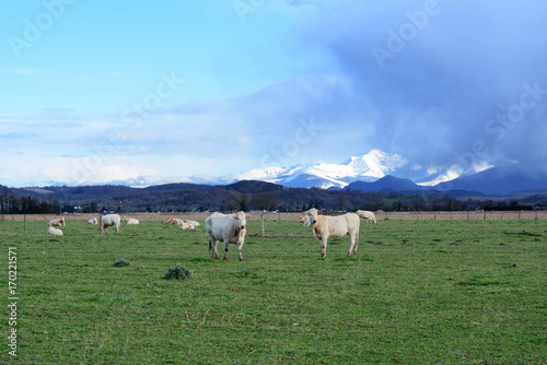 © Alena, Fototapeta premium Young bulls in the field, Southern France.
