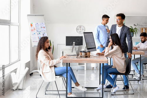 Obraz premium Young business colleagues working at table in office