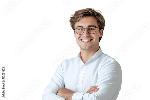 © sinseeho, Fototapeta premium Young business executive smiling with arms crossed. Isolated on transparent background.