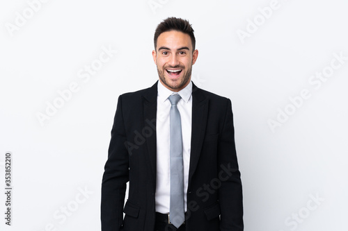 © luismolinero, Fototapeta premium Young business man over isolated background with surprise facial expression
