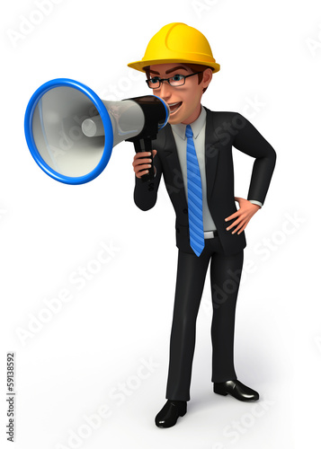 © pixdesign123, Fototapeta premium Young Business man with loudspeaker