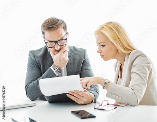 © Lumos sp, Fototapeta premium young business people meeting office teamwork paperwork document problem success worried stress