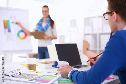 Obraz premium Young business people working at office on new project
