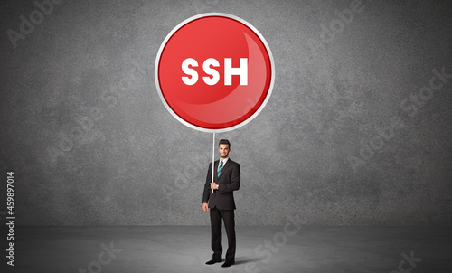 © ra2 studio, Fototapeta premium Young business person holdig traffic sign