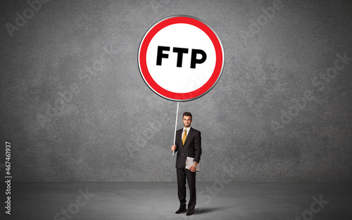 © ra2 studio, Obraz premium Young business person holdig traffic sign