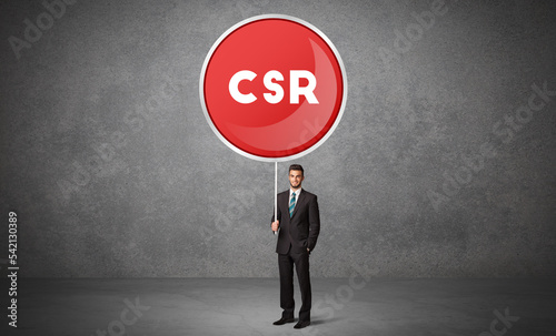 © ra2 studio, Obraz premium Young business person holdig traffic sign