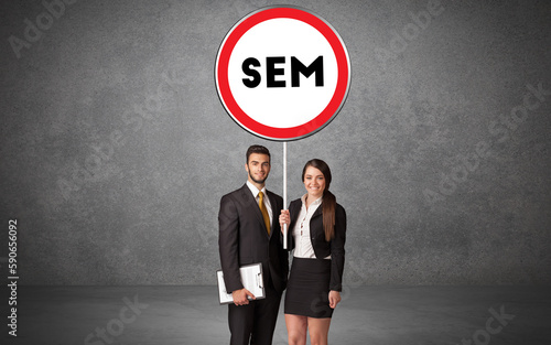 © ra2 studio, Obraz premium Young business person holdig traffic sign