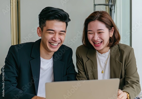 © Ganesha88, Fototapeta premium Young Business Professionals Collaborate in a Bright Dynamic Office Culture and Digital Engagement