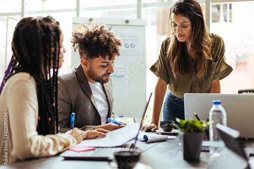 Fototapeta premium Young business team meeting in the office