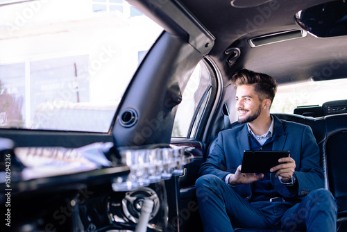Obraz premium Young businessman sitting in limo