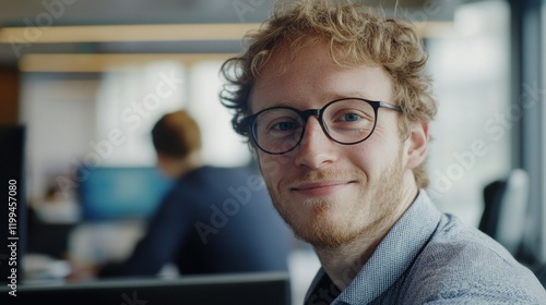 Fototapeta premium Young Businessman Smiling and Looking at the Camera