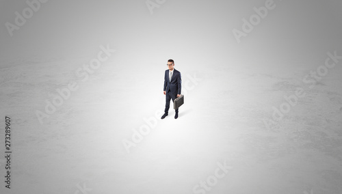 © ra2 studio, Fototapeta premium Young businessman standing alone in the middle of an empty space