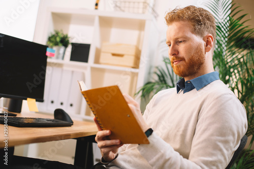 Obraz premium Young businessman taking notes in notebook