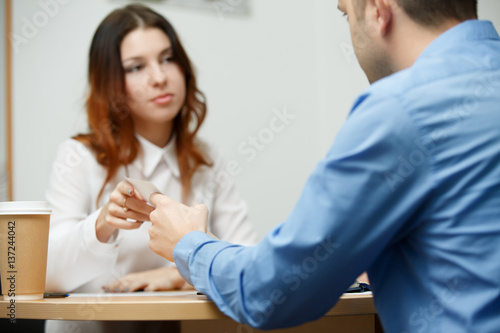 Obraz premium Young businesspeople working at table