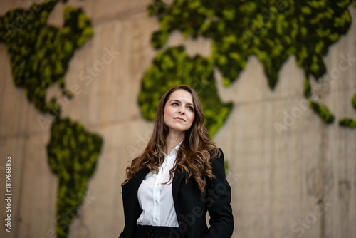 Fototapeta premium Young businesswoman envisioning global business growth