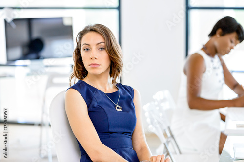 © Sergey Nivens, Fototapeta premium Young businesswoman sitting at desk and working