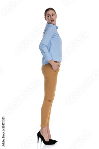 Fototapeta premium young businesswoman wearing blue shirt and looking to side