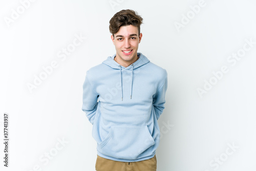 Fototapeta premium Young caucasian man isolated on white background happy, smiling and cheerful.