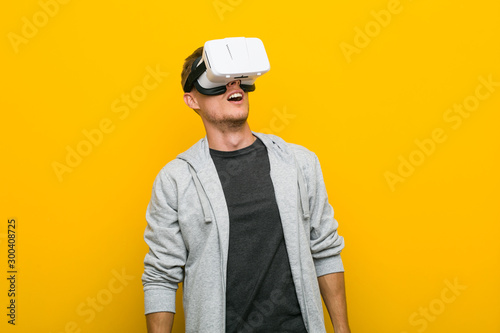 © Asier, Fototapeta premium Young caucasian man using a virtual reality glasses