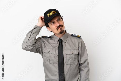 Fototapeta premium Young caucasian security man isolated on white background having doubts and...