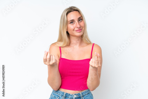 Fototapeta premium Young caucasian woman isolated on white background making money gesture