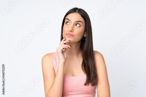 © luismolinero, Naklejka premium Young caucasian woman isolated on white background . Portrait