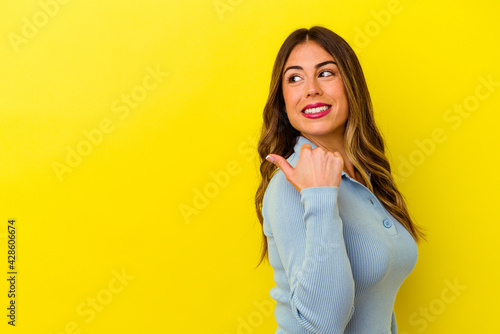 Fototapeta premium Young caucasian woman isolated on yellow background