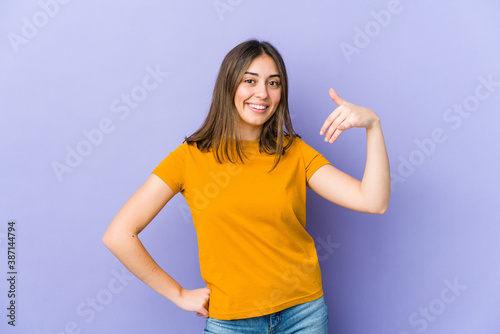Fototapeta premium Young caucasian woman laughing about something, covering mouth with hands.