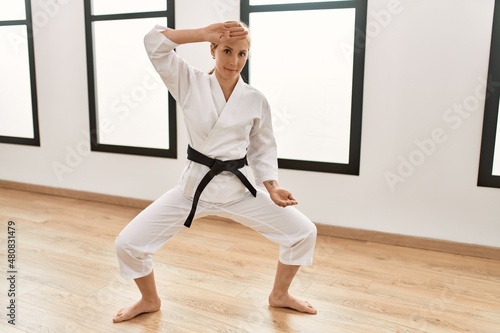 © Krakenimages.com, Fototapeta premium Young caucasian woman training karate at sport center