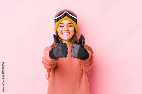 Fototapeta premium Young caucasian woman wearing a ski clothes isolated with thumbs ups, cheers...