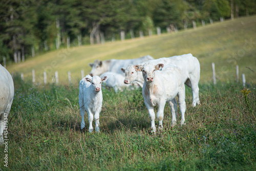 © Beatrice, Obraz premium Young charolais calves in summer pasture