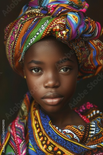 Fototapeta premium Young child wearing traditional headgear, ideal for cultural or ethnic themed...