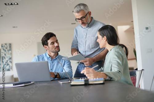© goodluz, Obraz premium Young colleagues with older boss working with computers