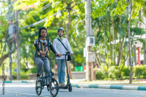 Obraz premium Young Commuters with Eco-Friendly Transportation