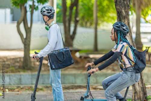 Obraz premium Young Commuters with Eco-Friendly Transportation