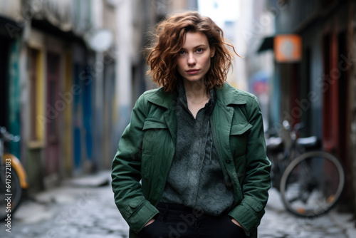 © JuanM, Fototapeta premium Young confident woman posing on a street