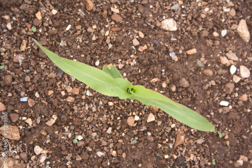 © saratm, Fototapeta premium Young corn plant growing in the field in springtime