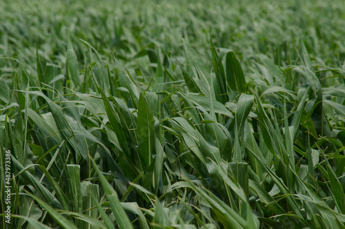 © Lautaro, Obraz premium young corn plantation. cornfield. farming