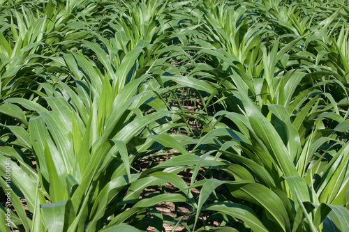 Obraz premium Young corn plants in a field.