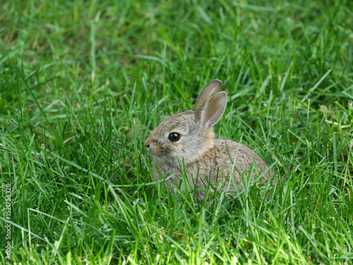 © Ted, Fototapeta premium Young cottontail rabbit on a backyard lawn, Colorado