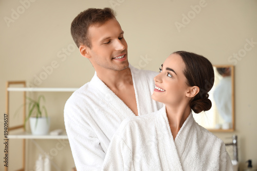 © Pixel-Shot, Fototapeta premium Young couple after shower in bathroom