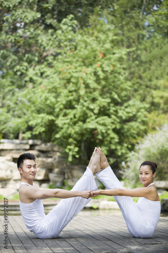 © Blue Jean Images, Naklejka premium Young couple doing yoga