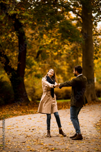 © BGStock72, Fototapeta premium Young couple having fun in the autumn park