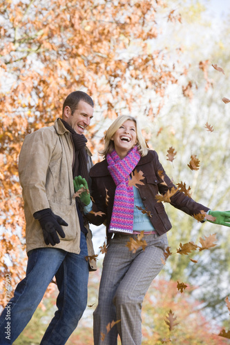 © Monkey Business, Fototapeta premium Young couple having throwing leaves in the air