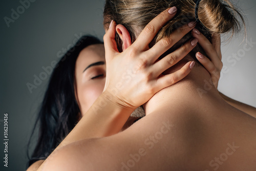 © LIGHTFIELD STUDIOS, Naklejka premium young couple hugging and kissing on grey with back light